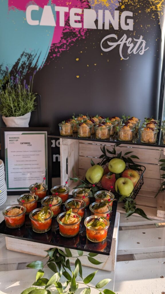 Przygotowane menu w pełni wpisywało się w tematykę spotkania – oparte zostało na lokalnych i sezonowych produktach, podkreślając ekologiczny charakter wydarzenia i wartości bliskie idei ESG, które na co dzień realizujemy w naszej działalności.
