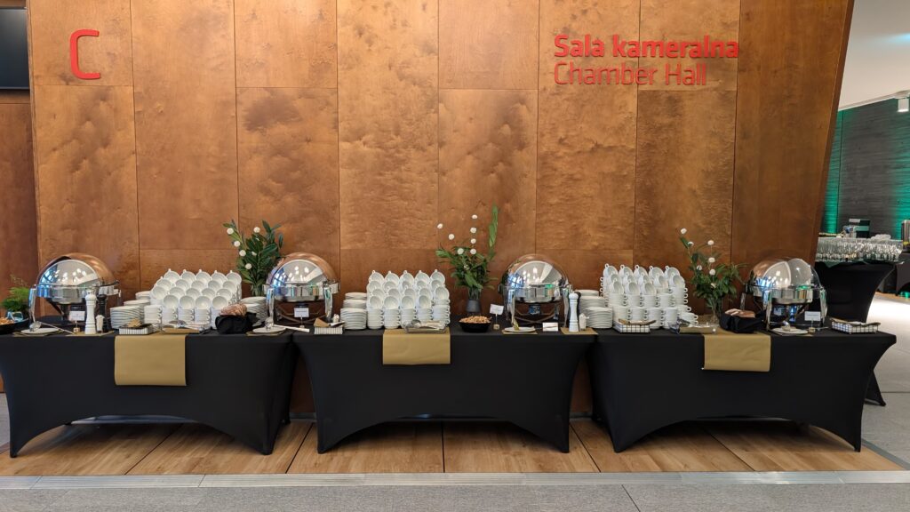 W ostatnim czasie Catering Arts miał zaszczyt odpowiadać za catering podczas imprezy firmowej zorganizowanej w wyjątkowych, eleganckich i niezwykle reprezentacyjnych przestrzeniach NOSPR w Katowicach. To miejsce uważane jest za jedną z najbardziej prestiżowych lokalizacji eventowych na Śląsku, idealnych na gale, bankiety, eventy firmowe i wydarzenia najwyższej rangi.